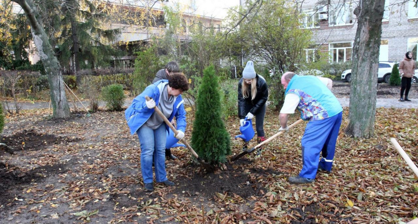 В Педагогическом сквере Рязани посадили 26 молодых саженцев