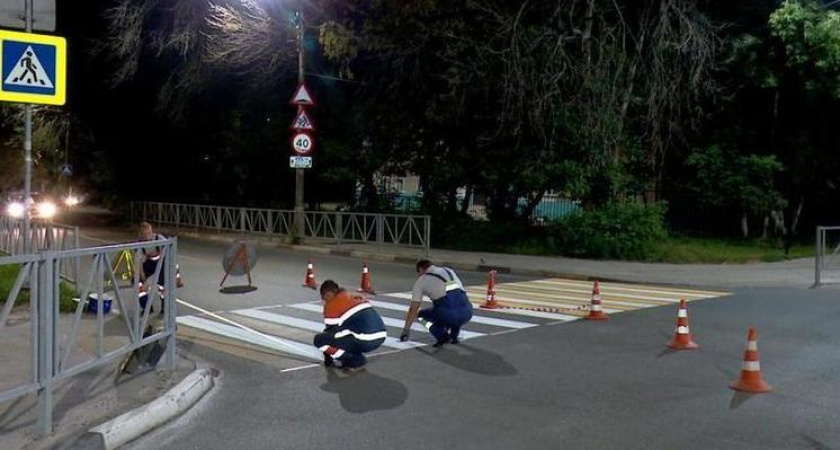 В Рязани по ночам проводят работы по нанесению дорожной разметки