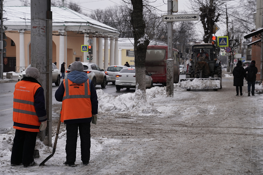 Остановки и пешеходные переходы чистили на улицах Свободы, Фрунзе, Первомайский проспект, проезд Яблочкова, Халтурина, Малое шоссе, Весенняя, Вокзальная, Ленинского Комсомола, Военных Автомобилистов, Мервинская, 7-й Мервинский проезд, Крупской.