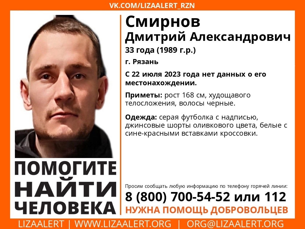 В Рязани пропал 33-летний Дмитрий Смирнов