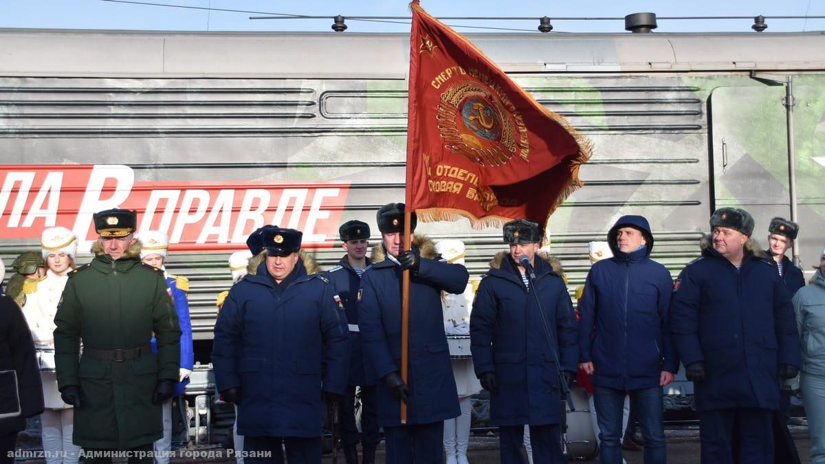 В рамках агитационно-пропагандистской акции состоялся прием рязанских школьников в ряды Юнармии и встреча юнармейцев с участниками СВО. На платформе вокзала жителям города был представлен концерт ведущих артистов Центрального дома Российской армии имени М.В. Фрунзе и рязанских исполнителей. В одном из вагонов состоялся телемост, в ходе которого рязанцы смогли пообщаться с воинами, находящимися в зоне СВО.