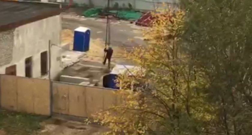 В Рязани местные жители засняли на видео предположительно сотрудников строительной фирмы, которые во время работ катались на башенном кране словно на аттракционе.
