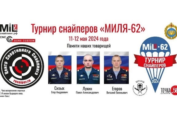 11 и 12 мая 2024 года «Центр Спортивного Снайпинга» (ЦСС) совместно с ВДВ ВС РФ и при поддержке депутатов Рязанской городской Думы провели турнир снайперов «МИЛя-62» в Рязанской области на полигоне Дубровичи . Соревнования среди 60 военнослужащих и гражданских стрелков со всей России были посвящены памяти снайперов 137-го гвардейского парашютно-десантного полка, погибших при исполнении боевых задач в ходе СВО - Павла Лукина, Егора Сизых, Виталия Егорова.