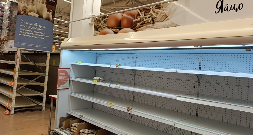 Жители Рязани обратили внимание на пустые стеллажи в гипермаркете «Ашан» в отделе, где продавались куриные яйца. Соответствующие посты с фотографиями горожане публикуют в социальных сетях.