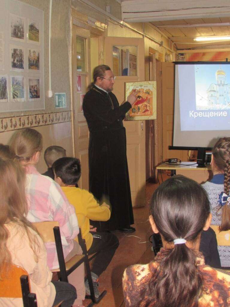 16 января сотрудник отдела религиозного образования и катехизации Касимовской епархии и настоятель Христорождественского храма с. Даньково протоиерей Роман Попов посетил Самыловскую ООШ Касимовского района (филиал МОУ «Сынтульская СОШ»). Священник в рамках классного часа «Разговоры о важном» провел с учащимися школы беседу на тему христианских праздников Рождества Христова и Крещения Господня. Слушателям была кратко изложена история праздников и их духовный смысл. Также отец Роман ответил на вопросы учителей и учащихся школы.