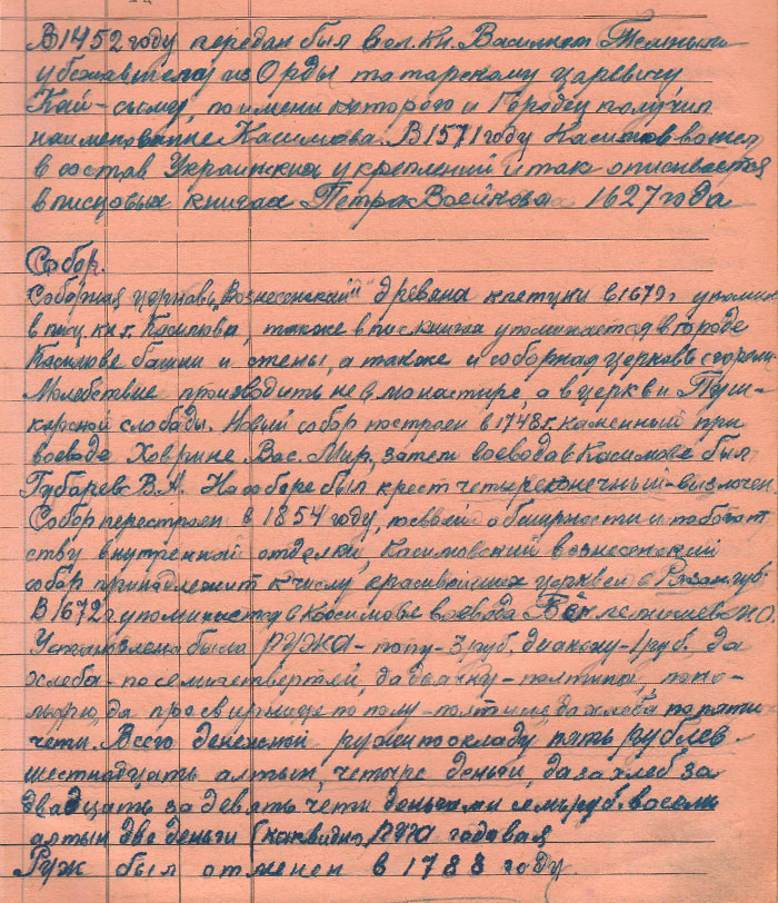 Кленов Леонтий Алексеевич в своих рукописях подробно описал церкви и монастыри касимовского края существующих и упраздненных за XVII, XVIII, XIX столетия.