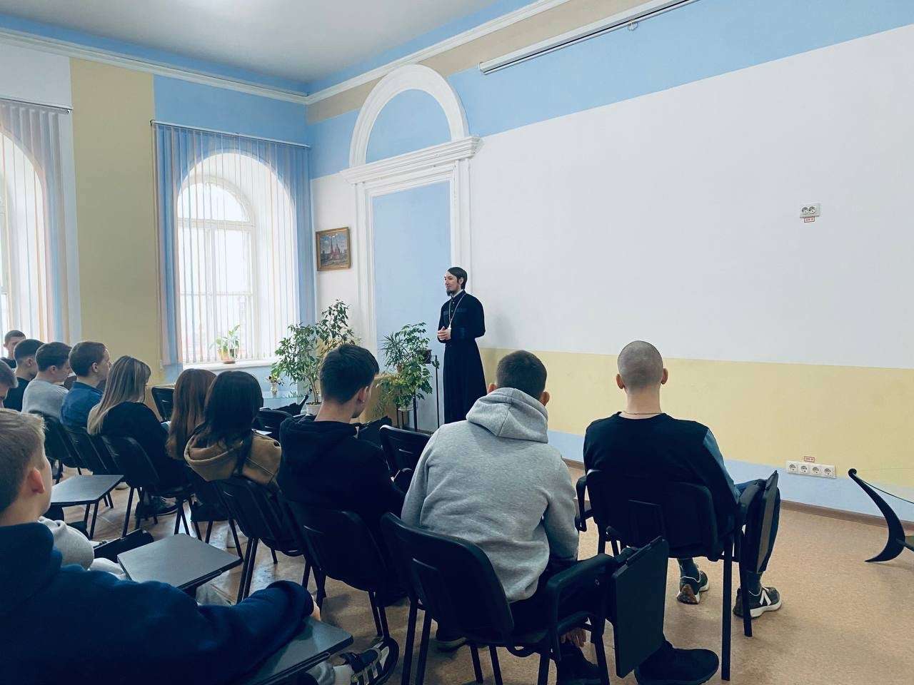 28 февраля руководитель молодёжного отдела Касимовской епархии иерей Николай Пронин провел беседу со студентами Касимовского нефтегазового колледжа на тему: