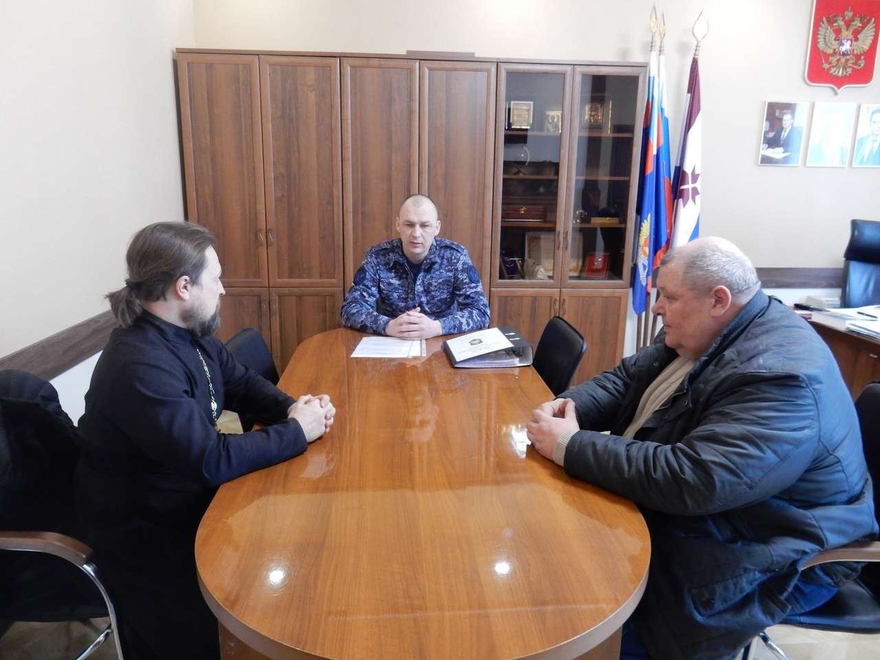 28 февраля состоялась рабочая встреча председателя МСПО «Небесный купол» иерея Михаила Егорова с первым заместителем начальника УФСИН России по Республике Мордовия — Ломакиным Павлом Владимировичем и начальником Отдела Специального назначения УФСИН России по Республике Мордовия, полковником внутренней службы Давыдовым Игорем Вильдановичем.