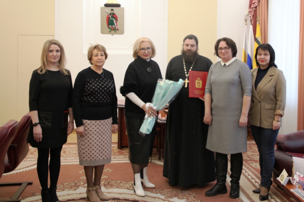 Глава муниципального образования, председатель РГД Татьяна Панфилова вручила Почетную грамоту Рязанской городской Думы клирику Рязанской епархии, настоятелю храма преподобного Серафима Саровского,