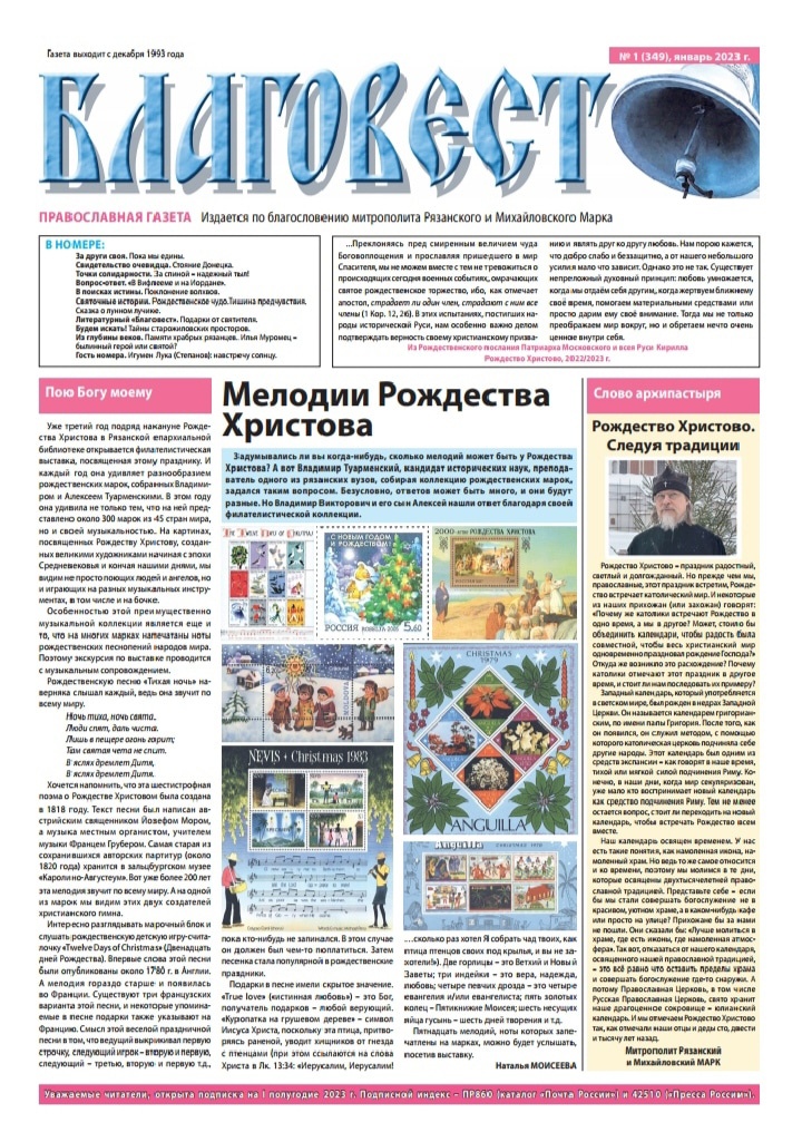 Вышел в свет январский номер газеты «Благовест»