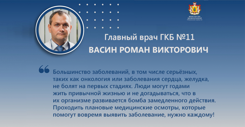 Главный врач ГКБ N°11, кандидат медицинских наук Васин Роман Викторович — о пользе диспансеризации и правилах её прохождения.