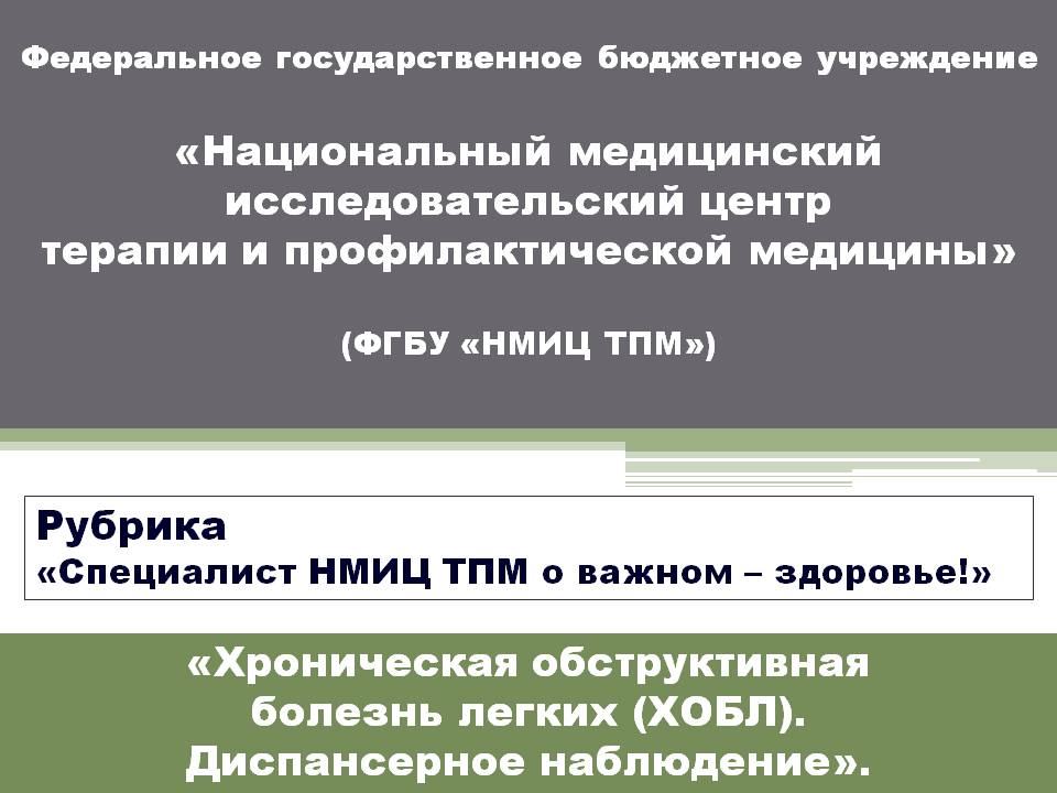 Видеоролик « ХОБЛ. Диспансерное наблюдение » от квалифицированных специалистов НМИЦ терапии и профилактической медицины содержит правдивые и важные сведения о хронической обструктивной болезни легких. Видеоматериал будет полезен для всех! Смотрите видеофрагмент по теме на наших официальных страницах ВК: https://m.vk.com/semashkorzn и в Одноклассниках: https://m.ok.ru/group/55734666199060
