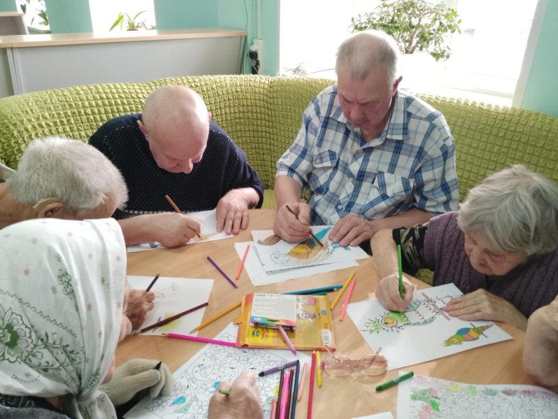 Раскраски – отличный способ улучшить память, повысить уровень сосредоточенности и внимательности. Культорганизатор Жанна Сорокина подготовила для своих подопечных раскраски по номерам и рисунки, требующие предварительного соединения линий по цифрам. И пусть они с первого взгляда и не кажутся творческим занятием, но однозначно развивают художественный вкус. Пожилые граждане подбирали цвета, пытались экспериментировать. Это приятно и просто, а удовольствия приносит массу! И не важно, чей рисунок получился лучше. Ведь так приятно рисовать в дружной компании!