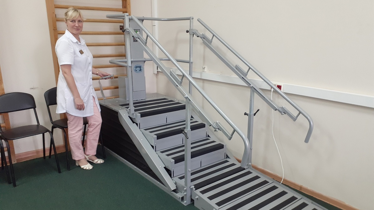 Среди нового оборудования – динамический тренажер. Он имитирует подъем по лестнице. При этом высота ступенек подбирается под конкретного пациента. Прибор помогает при реабилитации после инфаркта, аортокоронарного шунтирования, хронической сердечной недостаточности. Рядом с пациентом находится инструктор с пульсоксиметром.
