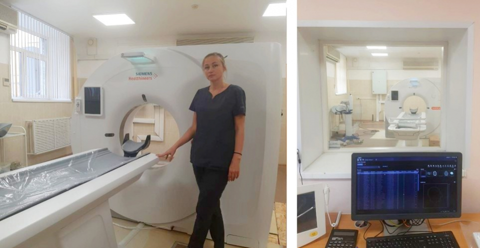 Томограф смонтирован, медицинский персонал прошёл обучение. Диагностические мероприятия проходят первые пациенты.