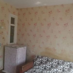 Отдельная однокомнатная квартира гостиничного типа. Второй этаж, не угловая рядом, с остановкой. С мебелью.Есть санузел, раковина, нет душевой кабины и горячей воды. Оплата + свет, дом 48/77