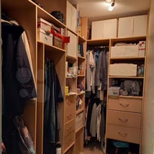 Многофунциональное наполнение большой 4.5м²гардеробной позволяет размесить много вещей.